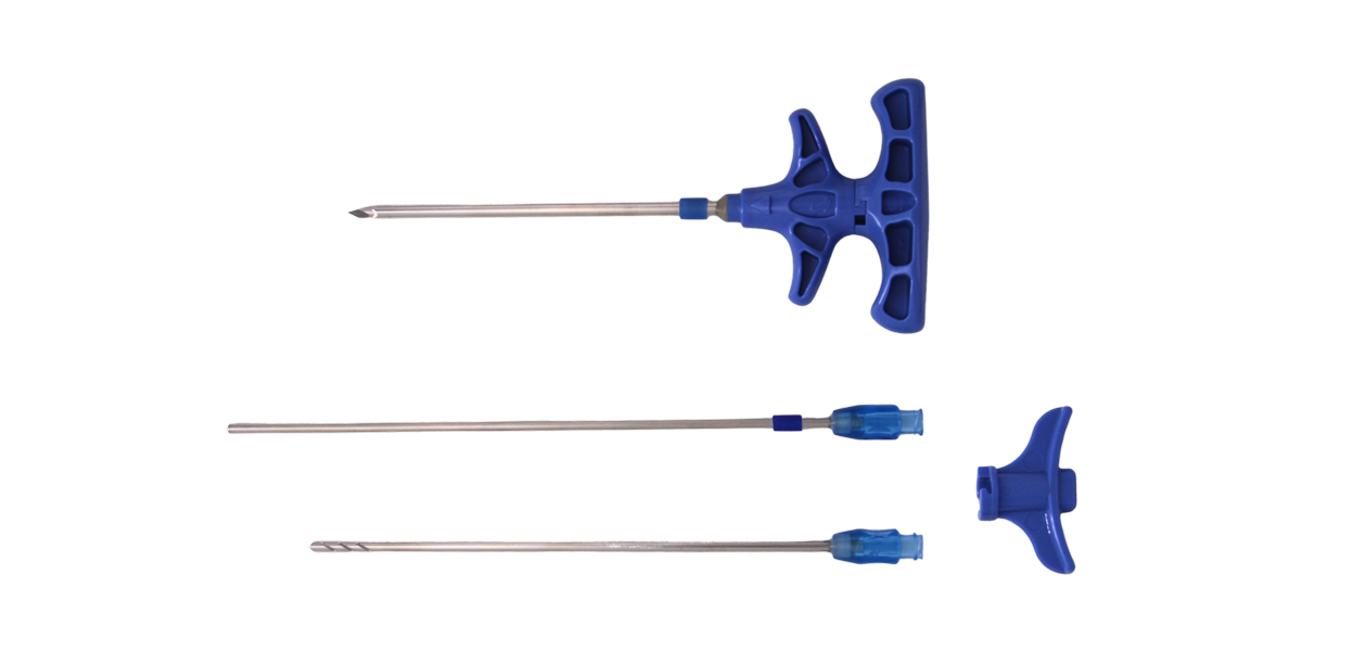 This set is designed for bone marrow biopsy at iliac level with a cannula for collecting the core sample. This tissue sample is then intended for anatomo-diagnosis.
